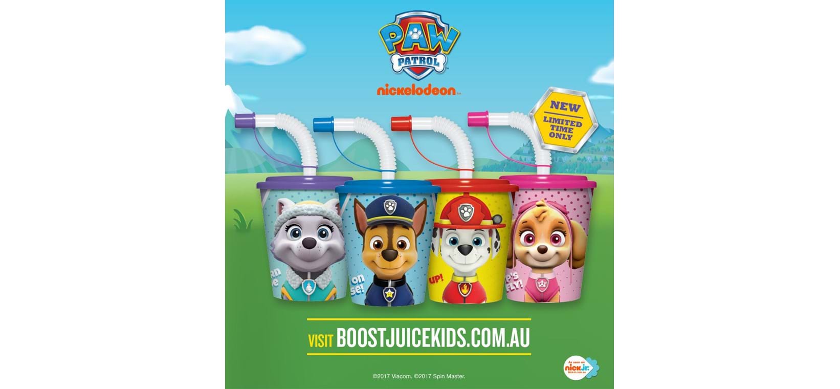 We paired Boost Juice with the worlds #1 pre-school brand PAW Patrol to bring these four cute & collectable cups to kids across Australia, New Zealand, Singapore, South Africa and beyond.