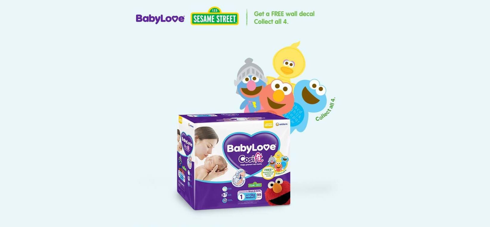 Sesame Street and BabyLove Cosifit Nappies launched their adorable promotion of collectable wall decals and packaging.