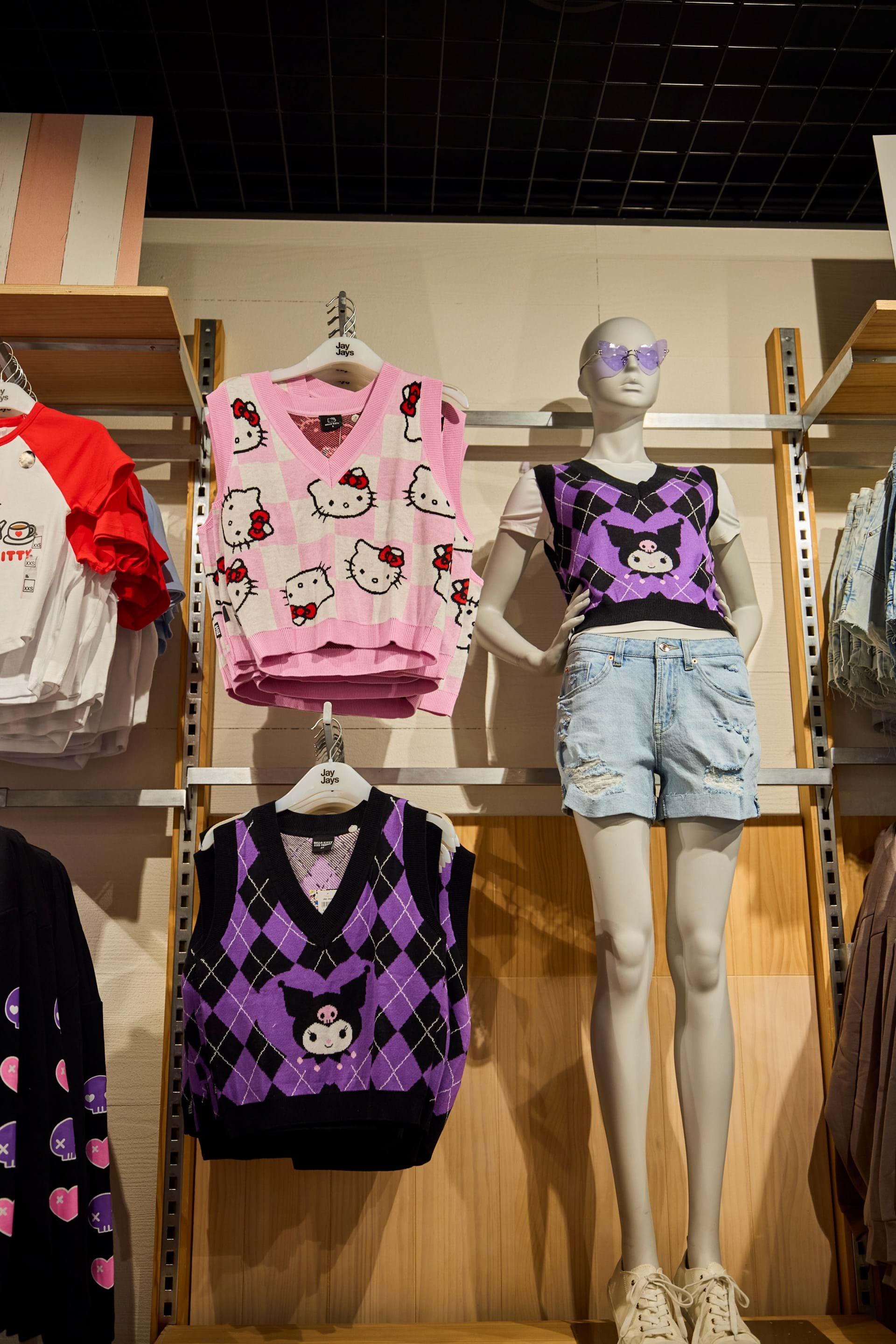 This collaboration brought iconic Hello Kitty charm to your wardrobe, blending Jay Jay's trendy styles with the timeless appeal of the beloved character.